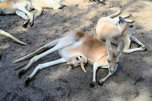 Rehellisesti sanottuna, tuolla kengurualueella olisi voinut viettää useamman tunnin vain katsellen noiden eksoottisten otusten menoa! Ehkä söpöin tilanne tuli vastaan, kun huomasin poikasen nukkuvan maassa röhnöttävän emonsa pussissa...